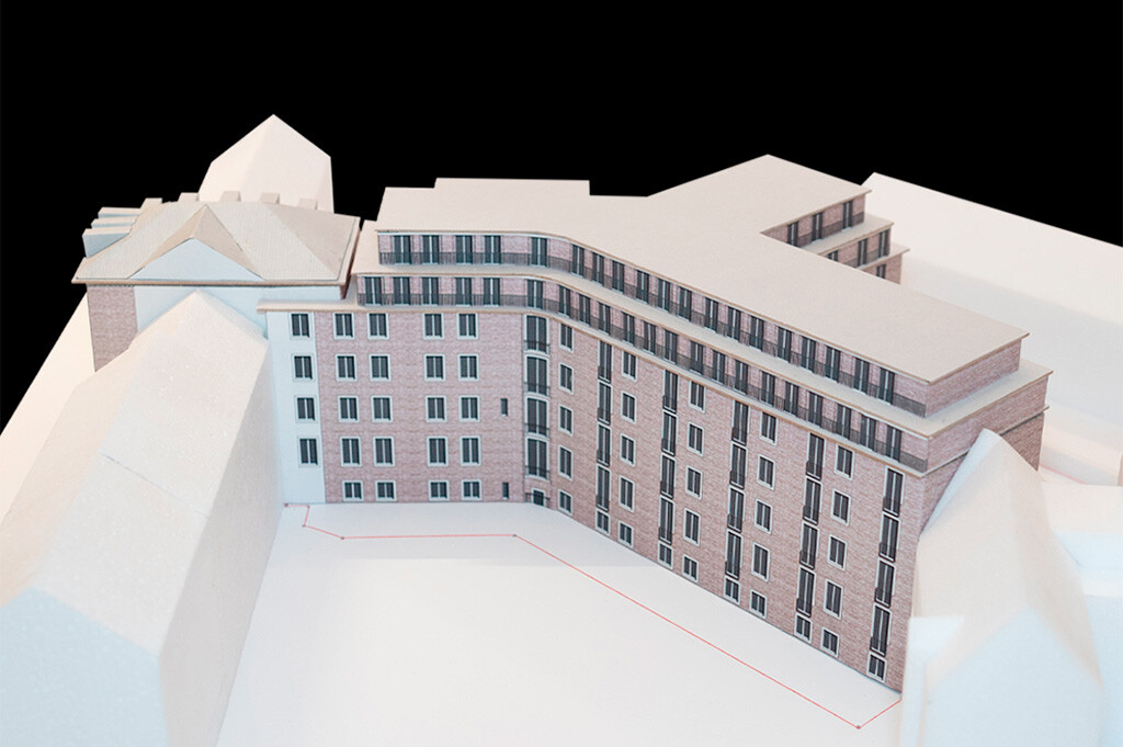 Als innerststädtisches Denkmal gilt das Gebäude „als ein gutes Beispiel für die zurückhaltende und sachliche Architektur der 1920er Jahre, die trotz ihrer Schlichtheit eine gewisse Monumentalität ausstrahlt“. Das Bestandsgebäude wird grundsaniert, die Nachkriegs-Wiederaufbauinstandsetzungen werden aufgrund der mangelhaften Bausubstanz wieder zurückgebaut und durch zwei neue Flachdach-Staffelgeschosse ersetzt. Es entstehen 45 Wohnungen sowie Büronutzungen und Konferenzbereiche.